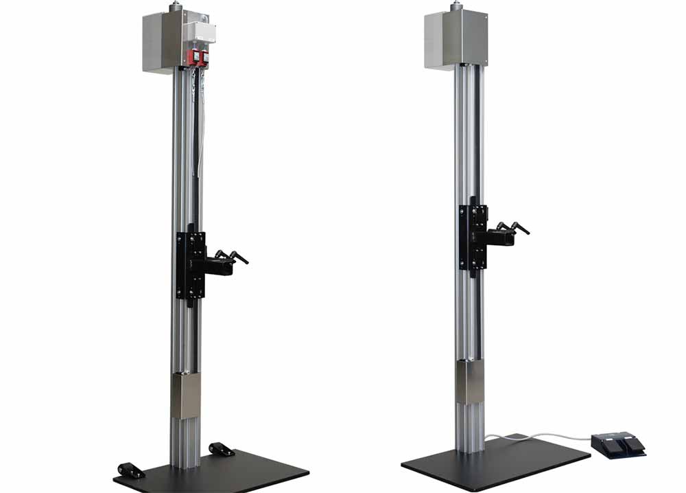 Das Modell „Vario E“ ist mit einem Elektromotor und Zahnriemenantrieb ausgestattet. Dadurch ist eine stufenlose Höhenverstellung des Gleitschuhs von ganz unten bis ganz oben über den gesamten Hebebereich möglich. Das rückenbelastende Heben der Fahrräder in das Haltemodul entfällt. Der Fahrrad-Montageständer Modell „Vario E“ kann mit Zugschaltern statt Fußschaltern ausgestattet werden. Es sind alle Haltemodule einsetzbar. Für den pneumatischen Rahmenspreizer ist ein Druckluftanschluss erforderlich.