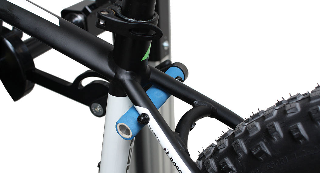 Die Kunststoffelemente schützen Fahrräder und deren Lackierung vor dem Anschlagen am 3-Punkt-Halter.
