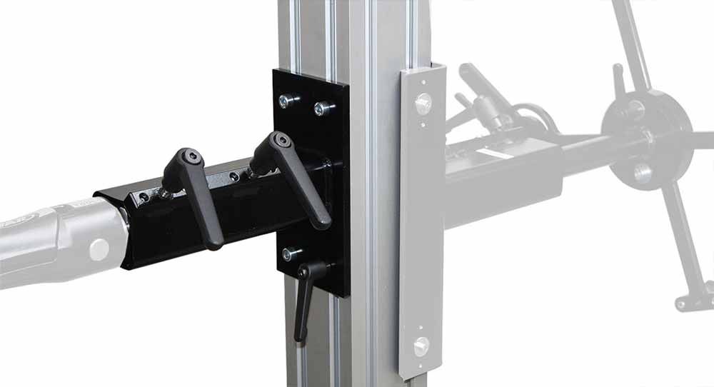 Manuell höhenverstellbar - erweitert alle Fahrrad-Montageständer mit Aluprofil in einen Doppelarbeitsplatz. Alternativ kann der 3-Punkt-Halter Classic B auch direkt an eine Wand montiert werden.