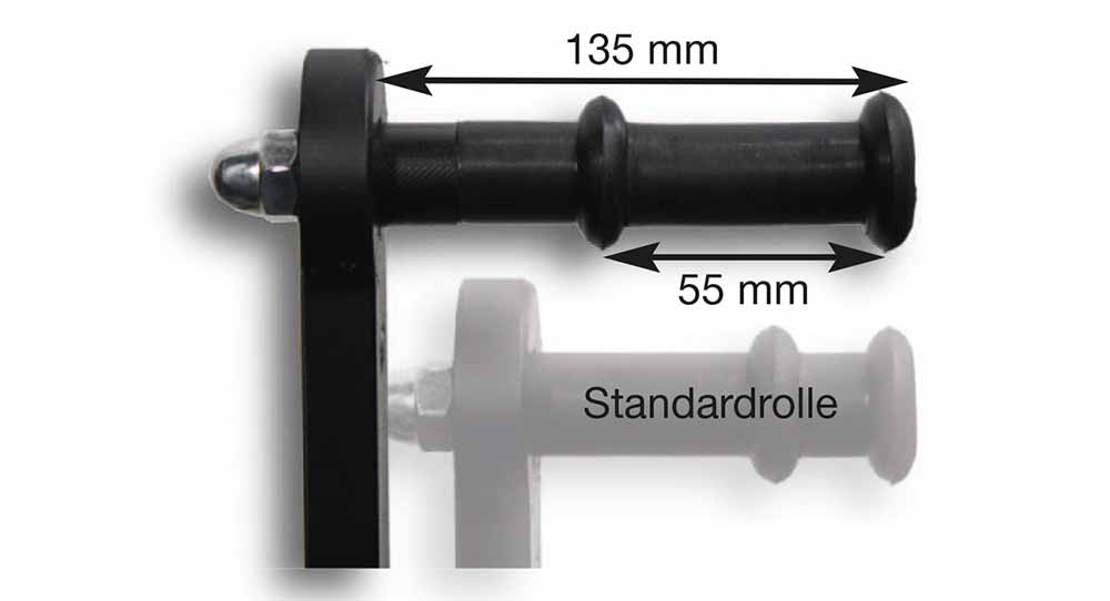 Für den 3-Punkt-Halter steht jetzt ein weiterer Gummirollensatz mit 135 mm Länge (Standardlänge 95 mm) für größere Rahmenbreiten zur Verfügung.